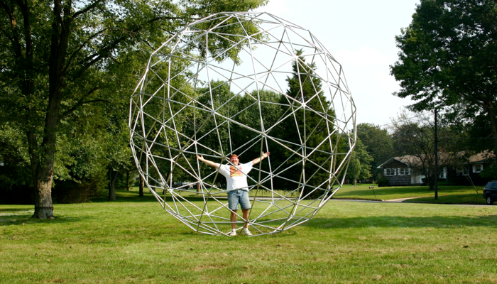 An omni-triangulated quasi-spherical tensile-compressive free-span 3ν icosahedral geodesic sphere...
